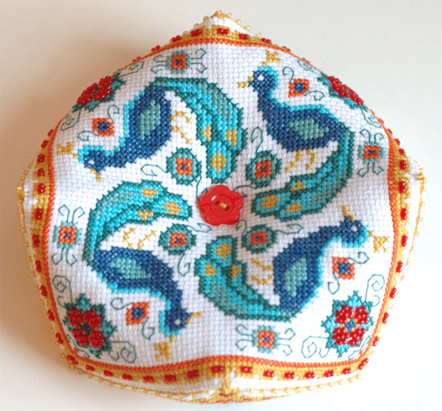 This listing is for a PDF ePattern to make a bright, pretty peacock biscornu- featuring red and gold seed beads. Comes with assembly instructions.