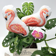 Make this set of mini flamingos, hibiscus and monstera leaf to stand in a vase, your potted plants, or even a summer wreath.