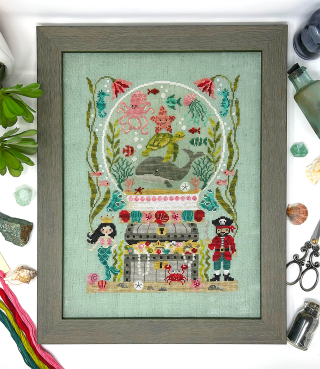 Welcome to our 2023 Summer Stitch-A-Long! This design features an underwater scene with sea creatures, fish, coral, shells, treasure, mermaid and more.