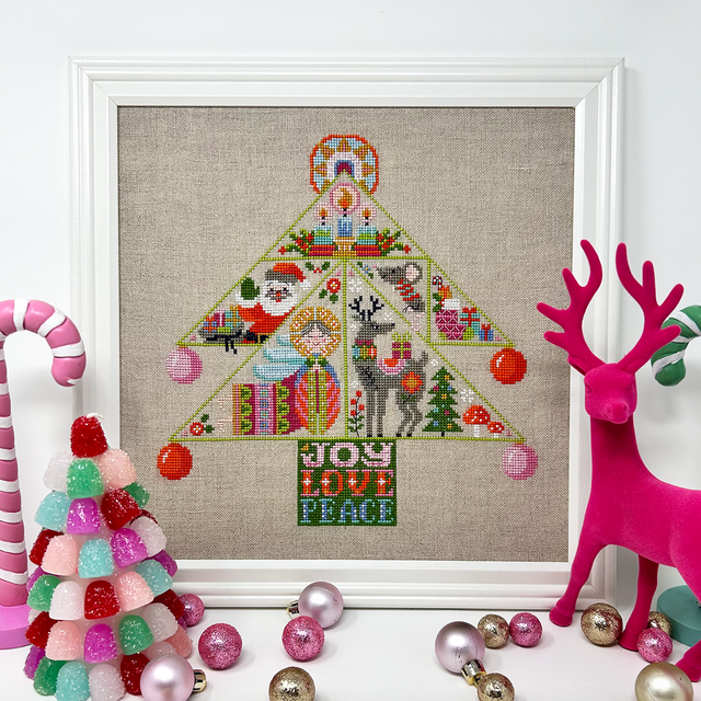 I'm so excited to share this collaborative design between Jodi of Satsuma street and myself! It's so much fun - from the folksy tree base of Joy Love Peace to the tip of the gorgeous mid-century inspired star!