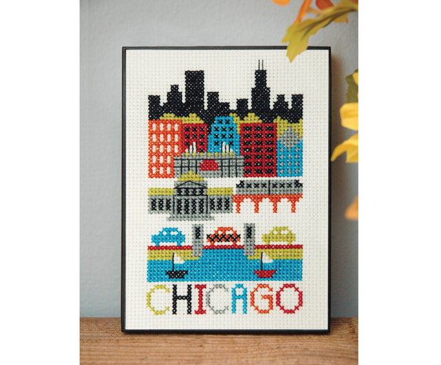 Réalisez une version au point de croix de Chicago, dans l'Illinois, avec Wrigley Field, le Musée des sciences et de l'industrie, les ponts Loop, la Willis Tower, le CNA Center et le Diamond Building.